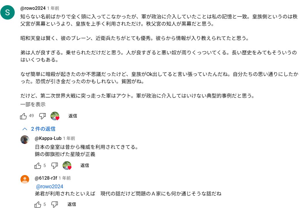 コメント欄で昭和天皇を評価する声があることに割と驚くのですけど、