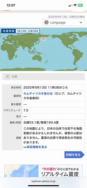 2025年9月9日朝、地震がありました