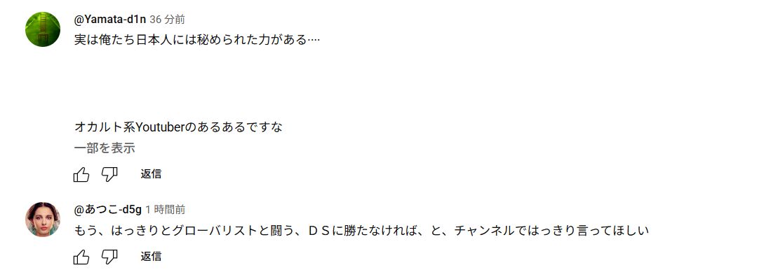 コメントは、こちら↓の動画につけられたものです